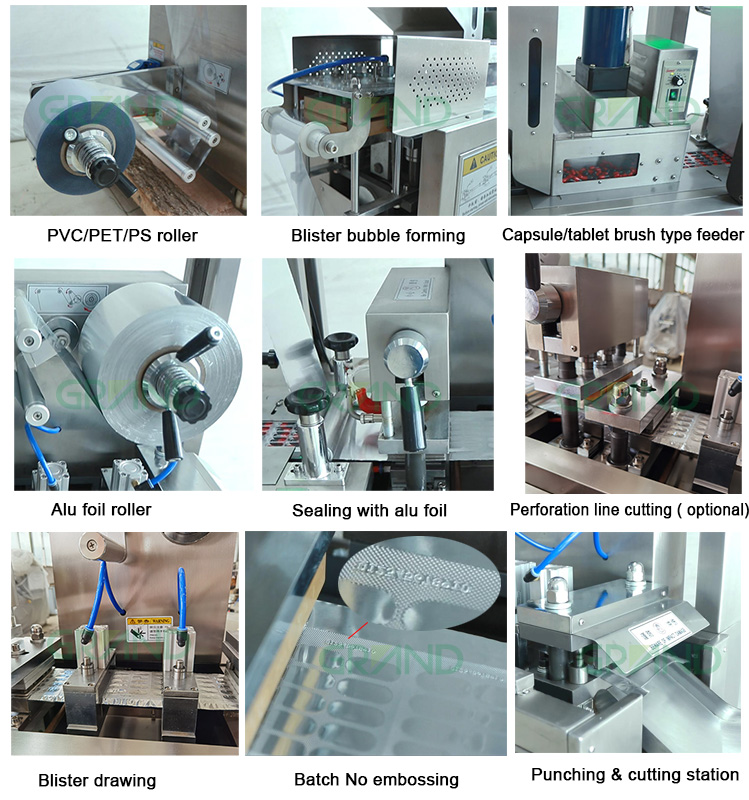 5.이 기계는 식품, 제약, 의료 기기, 하드웨어 및 전자 산업의 물집 포장에 적합합니다. 캡슐, 태블릿, 사탕 등에 대한 패키지를 소개하는 데 중점을 둘 것입니다.